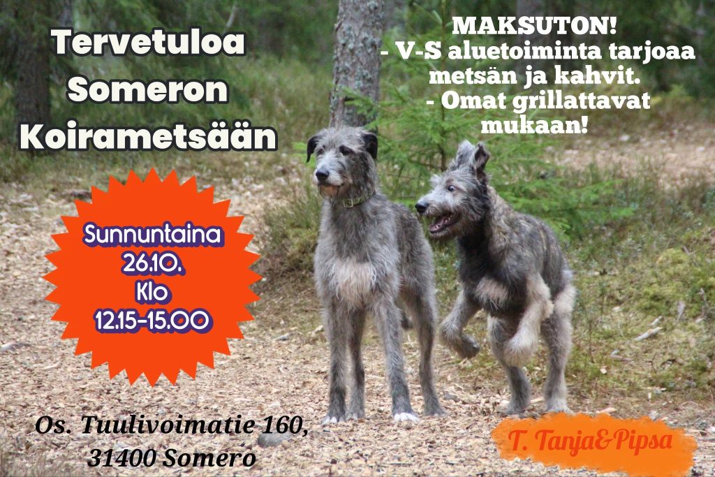Kuun ensimmäisenä sunnuntaina tapaaminen Uutelan koirapuistossa puolilta päivin.